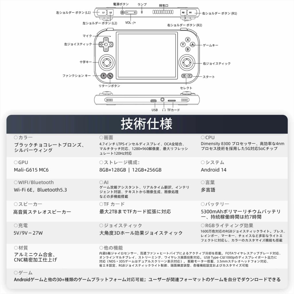 あまり中華ゲーム機に馴染みのない人に端的に伝えるならば、スマホの機能とゲームコントローラーを「金属の高級ボディ」にギュギュッと詰め込んだ『ロマンの塊』って感じです(笑)